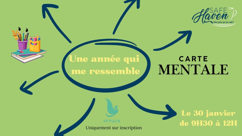 Le vendredi 30 janvier, l’association YA’PLU-K t’invite à un temps pour toi, créatif et inspirant, pour réaliser ta 𝐜𝐚𝐫𝐭𝐞 𝐦𝐞𝐧𝐭𝐚𝐥𝐞 𝟐𝟎𝟐𝟔